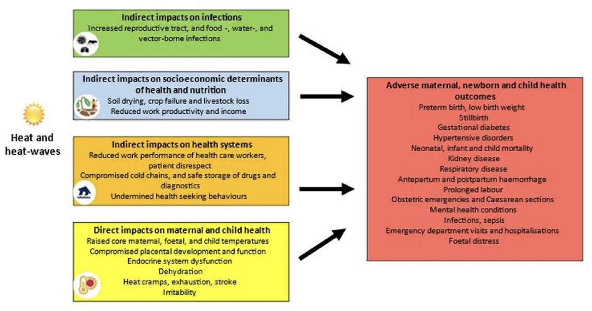 Researching how heat exposure affects maternal and child health in sub-Saharan Africa is critical as global temperatures continue to rise, posing increasing health risks to these vulnerable populations. This study has drawn on data from multiple longitudinal trials and cohort studies to investigate the link between heat exposure and adverse health outcomes during pregnancy and early childhood. Through collaboration with data providers and the use of satellite imagery, weather stations, and climate reanalysis data, the environmental exposures these groups face have been quantified. The findings aim to provide essential insights into how heat impacts health outcomes, guiding efforts to develop targeted interventions and inform policy in regions most affected by climate change.